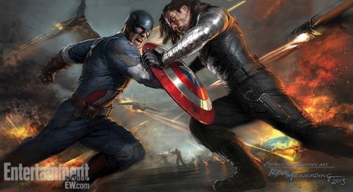 《娱乐周刊》网站今天曝光一张新的《美国队长2:寒冬战士》(Captain America: The Winter Soldier)概念艺术,图片上曾经是至亲好友的“美国队长”史蒂夫·罗杰斯(Steve Rogers)与“巴奇”詹姆斯·巴恩斯(James “Bucky” Barnes)纠打在一起。在电影《美国队长》中,观众第一次见到“巴奇”詹姆斯·巴恩斯(James “Bucky” Barnes)就是他在一个小巷子里制止恶霸欺负当时还很弱小的史蒂夫·罗杰斯(Steve Rogers)。不过后来,巴奇在一次任务中从火车上掉到了冰天雪地的深渊中不知下落,大家都以为他死了。在《美国队长2》中,观众就会看到,巴奇没有死,他只是和美国队长一样冬眠了几十年。然而复苏过来的巴奇已经不是当年那个歪戴军帽的美国队长好搭档,他被改造成了邪恶的超级士兵“寒冬战士”(The Winter Soldier)。这张概念艺术由Ryan Meinerding绘制,如果你仔细看,还能看到在画面左上方的“猎鹰”(Falcon),他是神盾局为美国队长配的新搭档,电影中由安东尼·麦基(Anthony Mackie)饰演。《美国队长2:寒冬战士》(Captain America: The Winter Soldier)由安东尼·鲁索(Anthony Russo)和乔·鲁索(Joe Russo)导演,将于2014年4月4日上映。故事主要讲述美国队长在现代社会的故事,不会回到二战,但是有一些闪回部分。演员方面,除了克里斯·埃文斯(Chris Evans)继续扮演“美国队长”、塞巴斯蒂安·斯坦(Sebastian Stan)继续扮演“巴奇”(Bucky)即“寒冬战士”(Winter Soldier)外。还新加入了罗伯特·雷德福(Robert Redford)扮演神盾局顾问亚历山大·皮尔斯(Alexander Pierce)、艾米莉·范坎普(Emily VanCamp)扮演“13号探员”(Agent 13)、安东尼·麦基(Anthony Mackie)扮演“猎鹰”(Falcon),弗兰克·格里洛(Frank Grillo)扮演“交叉骨”(Crossbones/Brock Rumlow)。此外“神盾局”的塞缪尔·杰克逊(Samuel L. Jackson)、斯佳丽·约翰森(Scarlett Johansson)、科比·斯莫德斯(Cobie Smulders)以及扮演佩吉·卡特(Peggy Carter)的海莉·阿特维尔(Hayley Atwell)等也会回归。