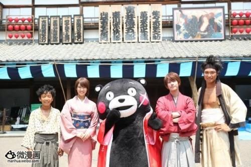 日本人气动漫作品《浪客剑心》的真人电影版第二部《京都大火篇》和《传说落幕篇》正在日本熊本县山鹿市的“八千代座”紧张拍摄。8月11日,熊本县吉祥物“KUMAMON”(くまモン)来到正在当地拍摄的剧组探班。憨态可掬的KUMAMON身着剑心的红色上衣,左脸画了十字伤痕。饰演绯村剑心的人气男星佐藤健 大赞“非常有剑心的气势”。佐藤健说,自己一直很喜欢KUMAMON,他感慨道,能和人气人物面对面交流真的很开心。武井咲则表示,有KUMAMON助阵,情绪顿时高涨了起来。剧组还收到了KUMAMON送来的西瓜、桃子、哈密瓜等熊本县当地特产。 由佐藤健主演的真人版电影《浪客剑心》去年上映以来好评不断,第二弹分为《京都大火篇》和《传说落幕篇》,将于明年夏季连续上映。