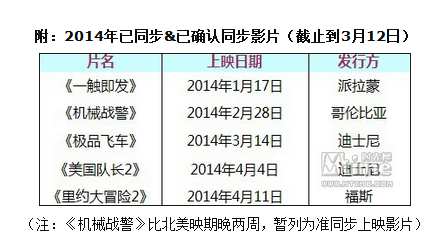 附:2014年已同步&已确认同步影片(截止到3月12日)