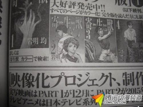 此前传出TV动画化消息的SF漫画题材作品《寄生兽》近日确定了播出档期和播出机构。在2014年10月,这部作品将由日本电视台播出。无论是原作粉丝还是对此类题材有兴趣的观众,届时都请不要错过动画的播出。