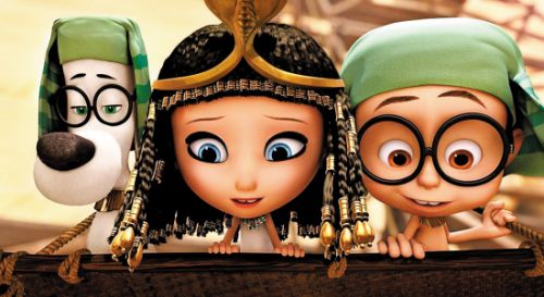 皮博迪父子与佩妮(中)展开一段冒险之旅达芬奇(左)为蒙娜丽莎画像阿伽门农(中)的绝招是亮出胳肢窝古埃及法老成了反派人物一条看上去很普通的狗,为何能占据北美票房榜数周不下?昨日,随着《天才眼镜狗》在广州试映,谜底揭开了——原来,这不是一条普通的狗,它还是一条懂得制造时光机玩穿越的狗!作为梦工场的年度重头戏,这部将于3月28日在中国公映的3D动画片真正做到了很多老师都没做到的事:让历史变得有趣。当然,片中的所谓“历史真实”都只是演绎,没人会当真,但是它们传递的信息却是非常严肃的:莫忘求证精神,哪怕我们为此要穿越时空!玩坏了达芬奇每个人都想知道蒙娜丽莎的神秘微笑背后到底隐藏着怎样的故事。正好,我们的“天才眼镜狗”皮博迪先生将文艺复兴时期的佛罗伦萨设为他“穿越”的中转站。在这里,小主人公舍曼见到了真实的蒙娜丽莎——她竟然是个大吼大叫的泼妇!正在作画的列昂纳多·达·芬奇完全搞不定这位凶悍的小姐,直到皮博迪先生一不小心将自己的脑袋套到了画框里,蒙娜丽莎终于笑了。玩坏了华盛顿作为美国首任总统,乔治·华盛顿有一个著名的典故:小时候,华盛顿用斧头砍倒了父亲的一棵樱桃树,父亲扬言要给那个砍树的人一顿教训,而华盛顿在盛怒的父亲面前勇敢地承认了自己的错误……这个故事,在《天才眼镜狗》中被“证明”是假的。皮博迪父子告诉大家:“这个故事根本就不存在,因为华盛顿亲口说,这只是大人用来骗小孩子听话而瞎编的!”玩坏了特洛伊著名的“特洛伊木马”的故事,在《天才眼镜狗》里也被玩坏了。进攻的希腊人个个天真滑稽,他们还擅长用自己的咯吱窝来“迎敌”——阿伽门农高喊:“来闻闻胜利的味道吧!”然后,他举起手亮出气味浓烈的胳肢窝,敌人应声倒地……这位远征特洛伊的著名希腊联军统帅最后还爱上了皮博迪先生在现实中的最大“敌人”——凶恶地叫嚣着要把他儿子舍曼带走的女官员。谁叫她长得这么伟岸,这么符合古人的审美观呢?玩坏了古埃及“谁要是干扰了法老的安宁,死亡就会降临到他的头上。”这句著名的“法老的诅咒”,正是刻在古埃及法老图坦卡蒙陵墓上的墓志铭。多年以来,关于这位神秘的早逝的法老,人类创作了很多书籍和影视作品。如今在《天才眼镜狗》里,这位著名的古人也出现了,而他的戏份竟然是追求舍曼的女同学佩妮!原本佩妮也对能成为“法老夫人”颇为神往,但在知道法老死后就要她陪葬的现实之后,就毫不留情地抛弃了法老,跟着皮博迪父子走上了逃亡之路。
