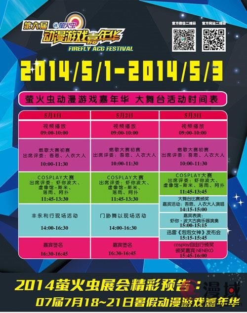 5月1日~3日,喜欢Cosplay,热爱cos文化的你,千万不能错过萤火虫动漫游戏嘉年华。超广阔的Cosplay拍照空间,超舒适的面基聚会环境,还有超豪华的嘉宾阵容,超丰富的嘉宾活动,让你度过一个难忘五一黄金周。