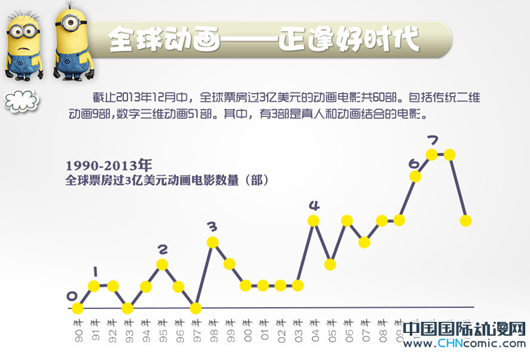 现今,动画已成为一个成熟、热门、最容易赚钱的电影类型。全球市场上每年都有多部动画片定期出炉,在娱乐男女老少的同时,也成为电影公司固定的生意模式。那么,这门用想象力结合技术来赚钱的生意,它有什么特性?有没有易取胜的妙招?本文选取60部全球票房超过3亿美元的动画电影作为样本,试图通过数据分析,为以上疑问提供答案。(备注:这60部动画都是美国制造,而美国现在拍一部动画片的制作成本在1亿美元左右,如果按1:3的好莱坞赚钱法则计算,一部动画电影收3亿美元全球票房,即可视为不亏本,有些还会通过卖影碟、周边产品等赚到钱。)全球动画——正逢好时代在90年代前,动画世界迪士尼一家独大。动画类型也以传统二维动画为主,《米老鼠和唐老鸭》、《白雪公主》等风靡了很多年。1986年,乔布斯投资的皮克斯动画工作室成立(于2006年被迪士尼收购),以《玩具总动员》为代表的电脑三维动画正式亮相,很快在市场上获得成功。这之后,梦工厂、蓝天工作室、照明娱乐、索尼动画等公司纷纷登场,成为主要的市场竞争者。如今,随着全球化的推进,动画已经成为一门越来越容易赚钱的生意,每年,都会有4部以上的动画片,全球票房超过3亿美元。这些卖座的动画片,都被“美国制造”包揽。六大玩家——梦工厂产量居首动画是一个烧钱的片型,少则投资几千万美元,多则上亿。而如今,好莱坞动画主要依靠海外市场,对营销和发行的要求非常高。因此,能在市场上立足并成功的大动画制作公司并不多,且多数都在大制片旗下。比如曾经的皮克斯,因为资金不足,一直跟迪士尼合作拍片,然后被后者收购。而梦工厂动画没有自己的强大发行部门,要依靠派拉蒙、福斯等大制片厂发行,付出的代价是约占票房15%的发行费用。目前产量最高的梦工厂由曾经的迪士尼动画一把手,后出走的卡曾伯格创建,2012年在中国上海设有分公司——东方梦工厂。奥斯卡——皮克斯大胜奥斯卡评委之所以爱皮克斯,是因为其团队讲故事的能力,以及锐意创新的精神。迪士尼、梦工厂、索尼动画多年提名一无所获或很少获奖,是因为在其厂牌下出产的动画,更追求合家欢效果,较难给成人观众大惊喜和大感动(况且奥斯卡评委们都是上了年纪的电影从业者,要求更高)。吉普力动画工作室获奖,几乎全是宫崎骏老先生的功劳。而阿德曼和莱卡是定格动画(包括粘土动画)的坚守者,它们出品的电影,虽然票房不能火爆,但品质大都上佳。比如《小鸡快跑》、《超级无敌掌门狗》(阿德曼)/《鬼妈妈》、《僵尸新娘》(莱卡)。卖座——品牌续集最靠谱动画电影的最大特点在于,想象力可以天马行空,剧情可以朝很多方向发展。所以,它也是最容易制作续集的一种电影类型。而且,因为品牌效应,续集的受众会越来越多(前提是,影片品质得有保证,不能低于前作)。市场上卖座的包括《冰川时代》、《马达加斯加》、《怪物史瑞克》、《玩具总动员》、《功夫熊猫》等系列。赚钱——妙招就是低成本如今的好莱坞,制作成本超过一亿美元,就可称为大制作。在本文统计的60部票房过3亿美元动画电影中,有34部制作成本超过一亿美元。但是,投资高并不意味能赚钱;倒是投资相对较低,但品质过硬的作品,更容易有高回报。这一点,无论是动画电影,还是真人电影都是一样。目前被认为投资回报比最高的动画电影是《狮子王》,回报比21.93。而真人电影被认为是《灵动:鬼影实录》,该片制作成本15000美元,全球票房1.93亿美元,回报比超过12890。电影是《我盛大的希腊婚礼》,这部2002年上映的独立喜剧片,预算仅500万美元,全球票房3.69亿美元,回收近74倍。[web_page]发行——海外票仓更重要提到好莱坞大片,很多人评其为“简单粗暴”,即情节简单,卖视效奇观。为什么要这样做呢?原因很简单,要全球不同民族,不同语言的观众,都能看懂。因为,海外市场,为好莱坞贡献了平均60%以上的票房。试想,如果一部投资2亿美元的大片在海外不卖,光靠本土市场,大多都亏死。动画片也一样,大制片厂的老大可以不在乎奥斯卡评委们怎么看,他们看中的是老少皆宜,全球观众都能进影院。最好,之后还会买影碟回家继续观赏。档期——跟着假期放片子动画电影的主力观众是儿童及青少年,因此,选择档期显得尤其重要。不过,北美放映市场的各大电影公司,会根据观众测评,竞争对手的影片实力,早早安排自家影片的档期。如果有冲突,电影公司之间也会协商调档。动画电影一般会选择在春假、暑假,及感恩节前后上映。片长——90多分钟就足够了真人电影如果导演坚持,可以拍得很长。但是动画片多以短平快为主,一是制作成本高,制作公司都在提倡节省成本;二是儿童和青少年观众这个群体的耐心有限,制作公司也没有必要把动画片拍得太长。口碑——让东西方观众都喜欢对于动画片,国内外观众各有评价标准。但大体上,大家对好电影的认识保持一致。比如,在IMDb和时光网的评分榜上,《机器人总动员》、《狮子王》、《玩具总动员3》、《飞屋环游记》四部电影均位列前四。但也有个别在国外反响平平,在国内很热的电影,比如《蓝精灵》。评级——合家欢才能卖大钱虽然主流市场上,动画片都是合家欢电影。但也有一些制作团队,对动画的理解不限于“小孩子看的东西”。因此我们也能看到,不少欧美、日本、法国等地的动画,题材各