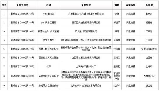 最新一期广电总局电影局全国电影剧本(梗概)备案、立项公示日前公布。2014年11月17日-12月15日,全国备案动画影片共10部,其中,今年大热的杭州原创动画品牌《秦时明月》也将推出新作《秦时明月之剑灵传奇》。