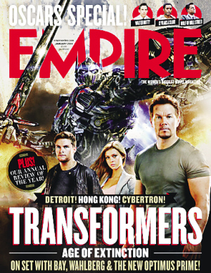 《变4》首领擎天柱新造型,与影片三位主演一同登上了著名电影杂志《帝国》封面。小新发北京时间11月26日消息,据国外媒体报道,由迈克尔·贝执导的2014年科幻巨制《变形金刚4:绝迹重生》(首次曝光汽车人首领“擎天柱”新造型,并与影片三位主演马克·沃尔伯格、妮可拉·佩尔茨、杰克·莱诺一同登上了著名电影杂志《帝国》2014年1月号封面。全新造型的擎天柱左手持盾,右手举起长剑,好似英勇的武士,后背喷发出幽兰色的烈焰,目光炯炯,摆出迎战的威武架势。新造型与几个月前在纽约动漫展上展出的一款擎天柱玩具基本一致。值得一提的是,此次的擎天柱造型与前作有较大不同,最明显的是非常醒目的红色涂装元素几乎看不到,而黑色竟成为主要色彩,使其周身显得光秃秃甚是老旧,外媒推测,这款造型也极有可能是擎天柱遭遇交火恶战后的战损形态,并不是正常状态的造型。除擎天柱新造型曝光外,一张国外影迷拍到的疑似擎天柱骑“机器恐龙”的宣传照也成为近期热议焦点。《变4》制片人洛伦佐·迪·博纳文图拉早前在采访中承认,新片将会加入新角色机器恐龙。“机器恐龙”归博派汽车人领导,共有5只恐龙,各个火力凶猛,他们可以在机器人形态与恐龙形态间变换,是对付霸天虎的利器。据悉,《变4》剧组在中国香港、北京、重庆武隆结束拍摄工作后,目前已经回到美国进行补拍与后期工作,影片中将有不少中国元素。《变4》将于2014年6月27日北美上映,中国内地或将同步上映。(美队)
