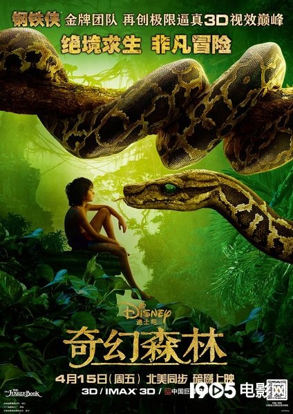 《奇幻森林》将于4月15日与北美同步上映北京时间4月8日消息,由迪士尼影业出品,中影发行,《钢铁侠》及《加勒比海盗》原班人马打造的史诗动作冒险影片《奇幻森林》(The Jungle Book) 曝光一支中文加长版预告片,斯嘉丽·约翰逊(Scarlett Johansson)配音的蟒蛇卡奥在丛林迷雾中现出真身,居心叵测的她一边巧舌如簧,娓娓道出狼孩毛克利的身世;一边又心怀鬼胎,陷毛克利于危险境地。影片将于4月15日与北美同步上映。影片的先期影评目前新鲜出炉,烂番茄影评网上收录的13篇影评好评率高达100%,和《疯狂动物城》的超高前期口碑非常相似。目前《奇幻森林》无一差评,几乎可以被称为“准神作”。其精彩动人的故事、无懈可击的特效、对于细节的注重都得到了影评人们的一致好评。《奇幻森林》巨猩登场《奇幻森林》脱胎于迪士尼上世纪60年代的经典动画《森林王子》,真人化之后的影片既保留了趣味性,同时也增加了不少精彩刺激的场面。今日曝光这支加长版中文预告片,就展现了巨蟒卡奥登场的完整段落,其巨大的身形与毛克利形成鲜明对比,配上迷离的嗓音更显惊心动魄。预告片伊始,毛克利独自乘坐浮木来到了一片幽暗的沼泽树林,落单的他要在这里等待自己的冒险伙伴,但丛林中传来的细微声响却让他坐立不安。接着由斯嘉丽·约翰逊配音的巨蟒卡奥在丛林迷雾中现出身影,她用神秘而魅惑的语调诱惑着毛克利,变幻无常的瞳孔、频频吐出的蛇信都暗示着这是一位狡猾而危险的狠角色。卡奥用空灵的语调娓娓道出毛克利的身世背景:一位父亲带着年幼的孩子外出旅行,他试图在洞穴中休息,但却被意外闯入的老虎谢利-可汗杀死。之后小孩被黑豹发现,它将其带回森林,交给狼群抚养长大,而他正是毛克利。这段加长版预告片再度展现了《奇幻森林》最顶尖杰出的视觉特效。无论是幽暗的沼泽、开阔的草原还是奔流的瀑布,在大银幕上都如此逼真,动物角色们也不仅外形栩栩如生,特效团队更是在嘴形上下了不少功夫,仿佛动物是真的在说话一般,尽最大可能在逼真的同时达到拟人化效果。《奇幻森林》由《钢铁侠》导演乔恩·费儒执导,《加勒比海盗》幕后团队精心打造,由本·金斯利(Ben Kingsley)、斯嘉丽·约翰逊(Scarlett Johansson)、比尔·莫瑞(Bill Murray)、伊德瑞斯·艾尔巴(Idris Elba)、露皮塔-尼永奥(Lupita Nyong'o)等知名影星配音。影片将于2016年4月15日与北美同步登陆全国3D、IMAX 3D、中国巨幕3D影院,一段令人难忘、扣人心弦的丛林冒险故事即将精彩开演。