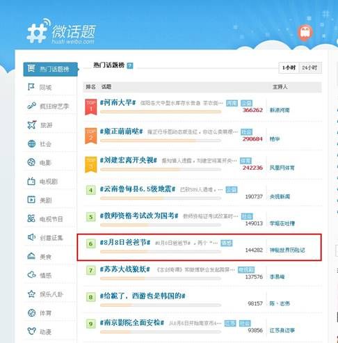 “8月8日,爸爸节”随着《神秘世界历险记2》上映突然火爆了起来。大牌明星和网友纷纷在当天发布微博、微信,大家齐说“老爸,我爱你!这样的社会现象迅速登上新浪微博话题榜和当时的热点新闻。另外,不伤眼睛的2D动画诚意之作也赢得中国好爸爸们的青睐和夸赞。另外,有电影媒体和历史研究者人士指出,《神秘世界历险记2》的片方创造性的开创了“8月8日中国爸爸节”电影新档期,这也将写入中国动画电影史。