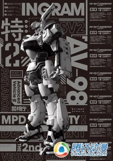 《机动警察》以前公开的海报图基本上都以主要角色为主,但是这次却改用INGRAM为主角,正下方用鲜艳的黄色字体打出了“Labor之间的战斗终于打响!军用VS警察用”的宣传语。画面中是INGRAM迎战军用RT99的勇姿。除了这张海报外,这次还同时曝光了一张剧照。剧照中是RT99在秘密输入地点新泻车站前暴走的样子。