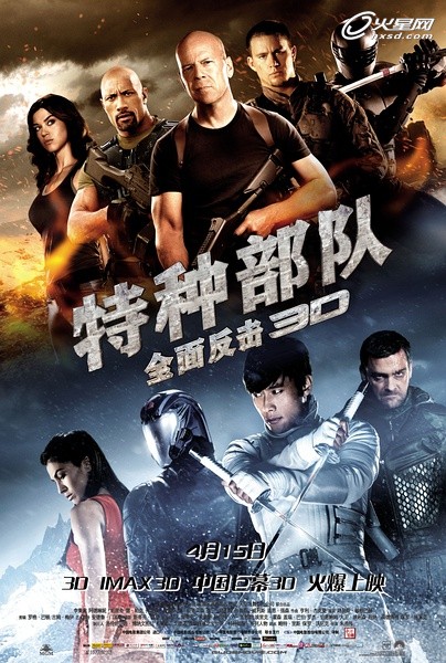 由派拉蒙出品的好莱坞动作大片续作《特种部队:全面反击》已于3月29日在北美地区全面公映。据了解,影片原定于去年6月29日上映,但为了追求视效,制作方用了将近一年的时间将该片转制为3D形式。近日,该片国内发行方正式宣布,该片将于4月15日登陆内地影院,仅比北美晚16天上映,堪称今年引进速度最快的好莱坞大片。《特种部队:全面反击》3D预告片 导演: 朱浩伟编剧: 略特·里斯 / 保罗·沃尼克主演: 查宁·塔图姆 / 布鲁斯·威利斯 / 道恩·强森 / 阿德琳妮·帕里奇 / 雷·史蒂文森 / 沃尔顿·戈金斯 / 雷·帕克 / 约瑟夫·梅泽罗 / 阿诺德·沃斯洛 / RZA / 李秉宪 / 乔纳森·普雷斯类型: 动作 / 科幻 / 惊悚 / 冒险制片国家/地区: 加拿大 / 美国语言: 英语上映日期: 2013-03-28(美国) / 2013-04-15(中国大陆)片长: 110分钟又名: 义勇群英:毒蛇反击战(港) / 特种部队2:正面对决(台) / 特种部队2:眼镜蛇的逆袭 / 特种部队2:报复 / 特种部队2:复仇 / G.I. Joe: Back 2 Revenge4月档猛片厮杀激烈今年四月档期堪称小暑期档,从3月底开始,又一波好莱坞大片组团来袭,《巨人捕手杰克》、《魔境仙踪》即将接连上映,昆汀·塔伦蒂诺新作《被解救的姜戈》也将揭幕4月。与此同时,《毒战》、《中国合伙人》及《致我们终将逝去的青春》等多部国产电影也是扎堆上映,令本属淡季的四月档期厮杀激烈。据了解,该片第一部曾在2009年暑期引入内地,最终收获过亿票房。此次续集卷土重来,片方负责人也表示信心十足,《特种部队:全面反击》在历经近一年的后期制作后,将为观众带来最完美的大银幕体验,这部电影只比北美地区晚上映半个月,可以体现出我们对大陆影迷的诚意。华裔淘汰前作导演执导筒自从《特种部队》票房大获成功之后,派拉蒙公司就开始着手准备拍摄续集。经过3年的准备和筹划之后,派拉蒙敲定华裔导演朱浩伟担任该系列续集导演,而他也是直接PK掉前作导演斯蒂芬·索莫斯走马上任。片方负责人介绍,前作更倾向于卡通和漫画的风格,而这部续集更加现实化,故事和动作场面更加真实可信。对于放手使用华裔导演,片方表示:身为东方人的朱浩伟在对功夫的理解和掌握上,似乎能更胜西方导演一筹,而且本片加强了功夫和现实世界的展示。对于新片即将来华上映,导演朱浩伟表示十分兴奋,希望片中的功夫和动作戏能够获得中国观众的肯定。铁血纯爷们组团复仇片方介绍,除了蛇眼(雷帕克)、公爵杜克(查宁塔图姆)、白幽灵(李秉宪)等主演悉数回归,两大动作巨星的全新加盟,相信会令影片暴力动作指数成倍激增。在新一集的故事中,眼镜蛇继摧毁巴黎铁塔后又开始策划绑架美国总统,特种部队除了要与恐怖分子再度火爆对决,还要面对潜伏已久的内部叛徒。在一次行动中,特种部队受袭损失惨重,被迫以残阵抗敌。此次,道恩·强森和布鲁斯·威利斯领衔的铁血纯爷们组团复仇看点十足。
