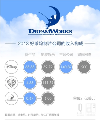 一个外来投资者到如果了解了好莱坞,会发现他们可投资的地方并不多。好莱坞的几大电影公司――迪士尼,环球影业、 派拉蒙、华纳兄弟、21 世纪福克斯,都是非卖品,要么体量太大,要么早已被买得差不多,被维亚康姆、时代华纳等传媒集团收购。在这几年里,那些被收购的大多是内容制造商,漫威、卢卡斯影业,还有今年被复星国际投资的 Studio 8,这些小公司也基本上都找到了东家。好莱坞是大制片公司的体制,发行公司处于食物链的最上端,总会比外来投资者早一步到。现在像梦工厂动画这样擅长制造 IP,衍生品和发行能力需要外部补充的公司并不多。或许比起孩之宝和日本软银,它更有可能被好莱坞本身的大制片公司吃掉。