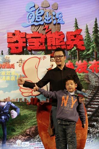 郭涛、石头对《熊出没》”点“赞郭涛分享对亲子卡通感想1月12日,国内首部真3D卡通《熊出没之夺宝熊兵》在京举办盛大的首映礼暨发布会,影星郭涛携儿子石头作为特别来宾现身现场,为影片征战贺岁档助威打气。《熊出没》大电影由深圳华强、优扬文化、乐视影业、珠江影业、卡酷卫视、航美传媒等联合出品深圳华强、优扬文化、乐视影业、珠江影业、卡酷卫视、航美传媒等联合出品,现已定档与2014年1月17日登陆全国各大院线。郭涛首次公开“熊孩子养成记” 石头现场玩的不亦乐乎2014年,一档电视栏目《爸爸去哪儿》带火国内“亲子”话题,而作为栏目“主角”的郭涛、石头父子自然也成为观众瞩目的焦点。在最近一期节目中,石头曾公开提到《熊出没》影片相关内容,作为“熊粉”的郭涛父子此次现身发布会,并将代表全国家庭观众揭晓影片“父母审片会”活动最终评分结果。整个发布会过程中,石头保持着在节目中的活泼好动,多次抛开父亲郭涛和主持人,一个人和一旁的光头强玩偶玩的不亦乐乎。面对现场主持人的提问,石头能如数家珍般的介绍起影片《熊出没》中的各个角色。当被问到愿不愿意做“熊孩子”的时候,石头毫不犹豫回答“愿意,因为我很淘气。”引发现场媒体和观众的大笑。在当天的活动中,郭涛首次对媒体谈到他的“熊孩子养成记”。作为内地著名影星,郭涛平时片约不断,难得有时间陪在孩子身边,而每年的春节自然成了郭涛眼中的亲子“黄金时段”。在亲子方式的选择上,郭涛表示卡通作品一直都是最好的方式,同时感慨现在的国产卡通需要《熊出没之夺宝熊兵》这样符合合家、亲子概念的正能量作品,在观影过程中实现对孩子思想启迪和辨别能力养成,如此寓教于乐的方式要比“瞪眼睛、发脾气”更有效果。在郭涛眼中,石头是个成熟、有思想的孩子,所以教育孩子要讲究方式方法,不能只有严厉,尝试顺着孩子的思想摸索才能更好的达到目的。最后,在为影片全国“父母审片会”结果点赞的环节上,郭涛公开许诺石头春节一定带他去看《熊出没之夺宝熊兵》的3D大电影版。