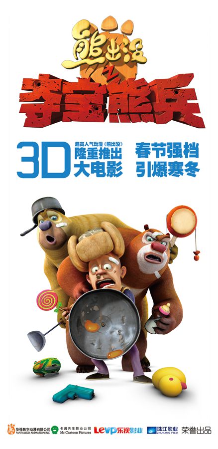 尽管具体的上映日期仍未公布,但从宣布的“春节档”的档期来看,首次进军大银幕的《熊出没之夺宝熊兵》,无疑将与《喜羊羊与灰太狼》等卡通展开正面PK。据悉,为了拿下首部大电影作品的开门红,除了在3D视觉特效方面的高额投入,片方更是在剧本剧情方面寻求创新,致力于打造国内首部“全年龄”段动画电影,力求通过更丰富的故事剧情,一改国产卡通的“纯儿童”观影现状,打造一部“小孩爱看,大人也喜欢”的亲子观影大片。