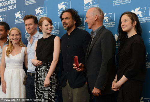 《鸟人》好评如潮当地时间8月27日,第71届威尼斯国际电影节如约而至。在接下来的11天时间里,将有来自11个国家的20部电影参与到金狮奖的角逐之中。这些影片中,有5部美国电影,4部法国电影;其他方面,意大利、德国、中国、日本、俄罗斯、瑞典、土耳其、比利时和伊朗电影各占一席。这种比例充分说明目前世界电影的格局并没有发生变化。按照计划,在当日的威尼斯,主竞赛单元只上映了一部电影,由阿加多·冈萨雷斯·伊纳里多执导的黑色幽默喜剧《鸟人》。而在地平线单元,上映的则是来自格鲁吉亚的开幕片《总统》,导演是莫森·玛克玛尔巴夫。 《鸟人》是阿加多·冈萨雷斯·伊纳里多的最新作品,在这部电影里,伊纳里多放弃了复杂的剪辑和多线程叙事,转而用起了长镜头。整部影片由十个长镜头无缝对接完成。影片的故事发生在剧院之中,一位曾经扮演过超级英雄的过气演员(迈克尔·基顿饰),希望通过出演一部舞台剧来挽救事业,但是跟他合作的傲慢男主角(爱德华·诺顿)却威胁着要把所有东西都毁于一旦。艾玛·斯通将饰演这位过气演员的女儿,她本身也是问题缠身,刚刚从戒疗所里出来,之后做父亲的助手。影片的故事发生在当下熙熙攘攘的大城市之中,而片中的两位主演,迈克尔·基顿和爱德华·诺顿时时刻刻都处在一种紧张的争锋相对的状态下。影片走的是现实混搭梦境的风格,某种跟拍和纪录片的拍摄手法被超现实的段落完全颠覆。再加上长镜头加持,整部影片所呈现出来的质感非常奇特。影片在外媒的评论中,获得赞誉无数。《好莱坞报道者》称:“片中的情感,黑色喜剧和演员的表演,混杂在一起,产生了化学反应,使得影片美不胜收。”《综艺杂志》称:“影片在各个层面上都值得称赞。能让观众癫狂,能让影评人疯狂。”可以说,这个评论是非常高的。这也使得影片成为了竞争金狮奖的热门电影。即便影片在本届的威尼斯空手而归,那么在年末的颁奖季和明年的奥斯卡上,该片也会是最有希望的影片。据悉,《鸟人》在威尼斯首映后,将于2014年10月17日在北美地区上映。