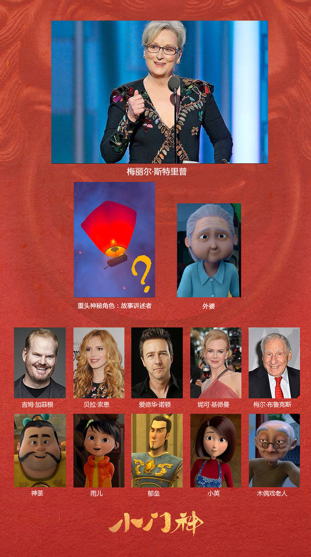 近日,韦恩斯坦国际影业公司公布了动画电影《小门神》国际版配音的全明星阵容,爱德华·诺顿(《鸟人》)加盟,将为郁垒配音。加上去年5月已经公布的梅丽尔·斯特里普、妮可·基德曼等大咖,影片配音阵容星光熠熠。据悉,《小门神》国际版定名为“The Guardian Brothers”,除梅丽尔·斯特里普、妮可·基德曼、爱德华·诺顿外,喜剧明星吉姆·加菲根、影视新星贝拉·索恩(《惊声尖叫》),以及迈克·比尔比利亚(《女子监狱》)和兰道尔·朴(《采访》)均会为影片献声。值得一提的是,梅丽尔·斯特里普配音角色是《小门神》国际版新加入的“旁白”角色,她还会为片中的外婆配音,令人期待。《小门神》是追光动画的首部动画电影作品,于2016年1月1日在国内上映,其第二部作品《阿唐小来的奇幻之旅》(暂定名)已经完成制作,将于2017年在国内上映。