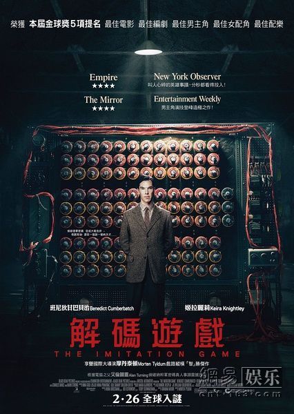 唯一一部上榜新片是本尼迪克特·康伯巴奇主演的传记片《模仿游戏》(港译《解码游戏》)。电影讲述的是英国数学家阿兰·图灵(Alan Turing)带领团队在二战中破译纳粹德国军事密码的真实故事,是去年颁奖季的热门之一。在刚刚结束的87届奥斯卡,《模仿游戏》八奖提名仅中最佳改编剧本,但获奖者格拉汉姆·摩尔获奖感言中那句感性的“Stay Weird,Stay Different”(保持怪异,保持与众不同)在社交媒体疯狂走红,成为人们对这届奥斯卡为数不多的记忆,对影片票房来说,当然也是利好。