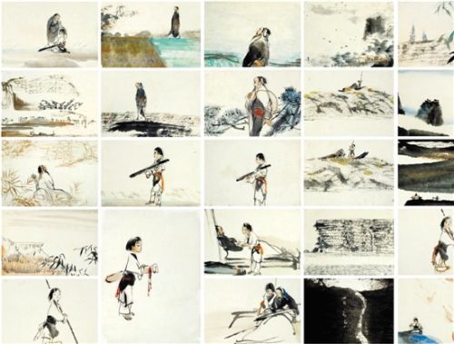 27年前,水墨动画《山水情》拿下世界最高奖令人震惊昨天,原画设计者揭秘当年中国动画不可复制的大制作《山水情》原画一部27年前的中国动画,曾经震惊世界,在朋友圈里红了一阵又一阵。这就是1988年,上海美术电影制片厂拍摄的《山水情》。许多人对这个名字还很陌生,但是百度一下这部动画会被吓一跳——第14届蒙特利尔电影节最佳短片,这相当于一座奥斯卡小金人了。而国内国际上对它的评价更是高到吓人:水墨动画的巅峰、最后的绝唱、奇迹……这部动画可以说是“杭产”,因为两位原画设计,都是来自杭州的中国画家:吴山明和卓鹤君。就在前年,第九届中国国际动漫节上,《山水情》的设计稿还拍出了50万元的高价。这究竟是一部什么样的神作?昨天下午,中国美院“国美之路”摄制组赶去为吴山明拍摄纪录片,记者随队前往,听吴山明讲述《山水情》背后的故事。中国水墨动画曾让全世界震惊80后或许小时候都对这部动画片有过模糊的印象:全片没有对白,剧情看不太懂,可是美轮美奂的水墨画面,悠扬的古琴声却有莫名的吸引力,这就是《山水情》。中国水墨动画的水准曾经让全世界震惊,达到的高度举世瞩目。因为,这些动画的“原画师”,是“全明星阵容”。1960年,上海美术电影制片厂拍摄的第一部实验水墨动画《小蝌蚪找妈妈》,相信大家都有深刻印象。当年那些蝌蚪,可都是齐白石笔下的形象。这部动画一出世,就一举拿下全世界规模最大的国际动画节——安纳西国际动画电影节特别奖。后来,李可染、程十发等国画大师都参与过上美厂的水墨动画拍摄、制作。而这部1988年由上美厂摄制的20分钟的《山水情》,人物设计和山水设计是来自中国美术学院的著名画家吴山明和卓鹤君。为动画演奏古琴的,是国家级非遗传承人、著名古琴演奏家龚一。三位动画导演都是中国动画界的殿堂级人物:特伟,阎善春,马克宣。这样的阵容注定要出经典。1990年,《山水情》获得了加拿大第十四届蒙特利尔国际电影节最佳短片奖。当时,这个A类国际电影节的奖,分量堪比奥斯卡。2006年,安纳西国际动画电影节上评选出的“世纪动画·100部佳作”中,《山水情》是唯一一部入选的中国作品。可惜的是,从那以后,中国就再没有真正的水墨动画了。国产动画往商业化和低幼化的不归路上走去,再也没能在国际舞台上闪亮。《山水情》成为那个时代水墨动画最后的绝唱。 吴山明揭秘《山水情》背后的奇迹日本人把《山水情》称为“奇迹”,对中国画不陌生的他们,却从来都没能复制出同样水准的水墨动画。“那是因为,我们当年制作《山水情》的方法是不可复制的。”昨天,著名画家吴山明在杭州凤凰山脚下的工作室接受采访,娓娓道来27年前的往事。当时,上美厂第一任厂长、动画电影“中国学派”创始人之一特伟,已经缔造出了《骄傲的将军》、《小蝌蚪找妈妈》、《牧笛》等一系列经典。“特伟老生找到我,说要让我为一部新的动画设计形象。当时的剧本还不是《山水情》,而是一个小偷的故事。”吴山明说,“我设计出了小偷、店主等三个人物之后,特伟赶来告诉我,这个题材要换了,因为这部作品要拿去国际上评奖。新的剧本就是《山水情》,表达一种人与自然的和谐主题,这个主题更能被世界认可。”新的脚本,描写了一位渔家少女偶遇古琴大师,向他学琴,最后在山川流水之间,感悟天人合一境界的故事。“从前的水墨动画,都是用大师的作品作为动画中的一部分元素。例如《小蝌蚪找妈妈》用了齐白石的虾和蝌蚪,《牧笛》用了李可染的画风。而我们的《山水情》却不一样,我和卓鹤君,我负责人物设计,卓鹤君负责山水背景,我们为这部动画设计的分镜稿大约有200多张。最后呈现在动画中的,有许多是我们两个人的原画。例如开场的第一个画面,老琴师站在江边等船,就是我的原画。而动画中凡是静止的山水背景几乎都是卓鹤君的原画。我设计的人物在运动的时候是上美厂的老师画的,但我为人物做的设计很细致,渔家少女撑船、师徒弹琴的镜头,我把能画的动态全部都画出来了。”这其中最让人震惊的场面,出现在动画片的第15分钟,当师徒二人在山水间穿行的时候,画面上出现了笔触,渐隐渐出,仿佛画家直接在屏幕上落笔一样。“那一段是真的现场作画的。”吴山明说,“因为那段剧情,如果按照逐帧画的方法来制作,会耗费大量人力。我们当时就给特伟出了一个主意,直接现场画,摄影机拍下来。”于是,两个大师就在玻璃上面把山水雨露,云起云涌一笔笔画出来。最后,摄影机拍摄下来的作画过程,与动画师创作的动画合成在一起,呈现出宣纸上才会出现的渲染效果,中国画的审美意境尽在其中。“这一段,我们后来自己看了也觉得很惊奇。”吴山明说,“很庆幸我们当时创作的时候就有许多留白,这让最后呈现的效果异常出彩。想不到中国水墨画的精髓能在动画里表现到那样的程度。”“我觉得很可惜,我们现在的动画学美国人,学日本人。”吴山明感慨,“美国拍了一个《花木兰》,中国就跟拍一个《宝莲灯》,弄一条小龙在主角旁边蹿上蹿下。其实中国人用自己传统的水墨画才能做出最有特色的动画来。”然而,上美厂那种分层渲染的水墨动画,比起普通动画来说成本太过巨大,再加上这种全大师阵容,在商业动画时代实在是无法复制的。无怪乎日本人要
