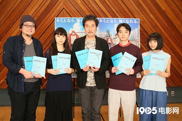 (左起)导演细田守、宫崎葵、役所广司、染谷将太、广濑铃