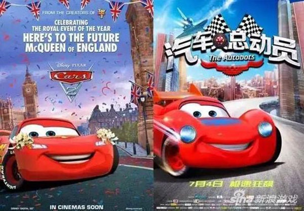 《汽车人总动员》与《赛车总动员》海报对比上海市浦东新区人民法院于21日公开开庭审理了迪士尼企业公司、皮克斯诉《汽车人总动员》的制片、发行和播映方厦门蓝火焰影视动漫有限公司、北京基点影视文化传媒有限公司、上海聚力传媒技术有限公司侵害著作权及不正当竞争纠纷一案。两原告共同拥有《赛车总动员》《赛车总动员2》系列电影的著作权及其中动画形象的著作权。原告代理人称,电影《汽车人总动员》中的动画形象K1和K2,抄袭了原告电影中的动画形象“闪电麦坤”和“法兰斯高”。被告还制作了展板和海报,抄袭了原告的动画形象。在被告运营的PPLIVE网站上,传播了海报、预告片和电影。《汽车人总动员》的名称与原告电影名称极其相似,在被告宣传海报中突出了汽车和总动员字样,故意遮盖“人”字,导致一般受众无法识别并对电影来源产生混淆和误认。海报中还突出使用并抄袭了原告动画形象的K1和K2。故被告的行为构成著作权侵权和不正当竞争。原告请求法院判令,蓝火焰公司、基点公司、聚力公司停止侵权;蓝火焰公司、基点公司连带赔偿原告经济损失300万元;蓝火焰公司、基点公司连带赔偿原告因制止侵权行为而支出合理费100万元。被告代理人则表示,《汽车人总动员》电影的K1和K2动画形象是独立创作的,没有剽窃原告《赛车总动员》《赛车总动员2》电影的动画形象。《汽车人总动员》中K1、K2车辆形象的设计借鉴了现有车型独立创作完成,与原告的动画形象不构成实质相似。原告主张被告侵犯知名商品特有名称也不成立。原告电影名称属于题材类的描述性的名称,本身显著性不强,不能认定为知名商品特有名称。被告一直宣传《汽车人总动员》是国产电影,相关消费者不会造成混淆。此外,涉案作品的票房收入扣除相关税金、电影专项基金、院线分成、其他创作成本后,是亏损的,被告不存在获利。法院将择日对该案作出宣判。