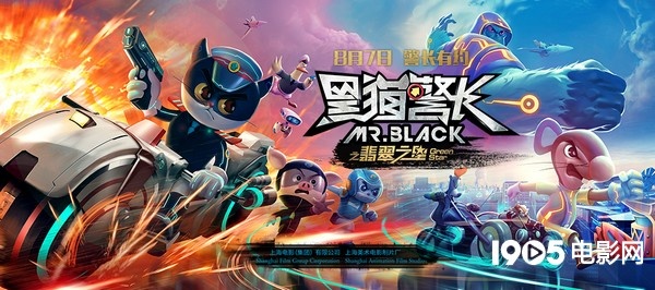 《黑猫警长之翡翠之星》终极海报充满太空科技元素动画大电影《黑猫警长之翡翠之星》将于8月7日上映,今年暑期档动画电影火力全开,《大圣归来》的后劲未眠,《黑猫警长之翡翠之星》的强猛攻势再度来袭。日前,大圣与黑猫警长共同录制节目,两大国漫英雄携手攻占暑期档动画类影片。随着上映日期的逐渐临近《黑猫警长之翡翠之星》终极海报随之曝光,视觉上的全面升级,外太空的设置明显,科技感、未来感十足,色调上也极具金属质感,看来全新升级的《黑猫警长》将携一个更加炫酷的超级英雄回归大众视野,实力不容小觑!国民动画英雄回归火力全开纵观市场,动画电影的热度似乎在今年夏天得以全面提升,6月份的机器猫大电影《伴我同行》最终以超过4.5亿元的高票房收报,全面超越日本本土票房,而进入7月份,国产动画良心之作《大圣归来》和有动画元素的《捉妖记》,一个后劲十足,一个高开高走,创造一个又一个业内奇迹,这也让人对《黑猫警长之翡翠之星》大电影的期待值大大增加,一个等待了三十年的“请看下集”、知晓度达100%的原创动画IP,将会有怎样的市场表现,也成为各界关注的焦点。在中国电影圈处处热议《大圣归来》票房奇迹的的当下,业内专家认为,《黑猫警长之翡翠之星》将是唯一一部可以与之抗衡的原创动画。与此前公布的海报走萌系路线不同,片方最新公布的《黑猫警长之翡翠之星》终极海报选择了视觉系路线。两款海报最先让人感知的是“炫酷感”,和大多数观众心目中《黑猫警长》动画片的质朴不同,这次海报的色彩十分绚丽,蓝黑色调神秘的太空背景、摩托车擦出的红色火花、手枪和机器人发射出的淡绿色激光,都传达出影片的科技感和炫酷感。影片中的主要角色也都悉数亮相,表情各异的脸庞显示出张力十足的博弈关系:凶狠的反派大猿博士占据整个大背景,彰显其强大的能力,而一只耳则露出狡猾的笑容,黑猫警长的粉丝牟三嘟始终和黑猫警长并肩作战,并露出一股机灵劲儿,似乎想到了什么妙招,另外一个引人注目的是深刻诠释了“鸭飞狗跳”的鸭子探长,据悉,在电影中,这位探长也将成为搞笑担当,看点十足。随着上映时期的临近,动画大电影《黑猫警长之翡翠之星》的热议度也越来越高。在最新曝光的这两款终极海报中,黑猫警长的身影最为亮眼,三十年前那个举枪的国民英雄已经完成了全面升级,一个21世纪的黑猫警长,有望满足更多更广泛的观众需求。