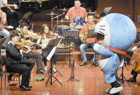 昨天下午,天津交响乐团2015市民假日音乐会在天津音乐厅上演。本场演出,专门为小观众精心筹划了一台“电影动漫交响音乐会”,演奏家们舞台上轻松活跃的表演形式,赢得了全场阵阵掌声和欢笑声。这台交响音乐会阵容不大,但是选择的曲目却是将孩子们爱看的电影和动漫音乐“一网打尽”,并进行了重新的器乐编排。音乐会以《愤怒的小鸟幻想曲》开场,音乐一响全场的孩子们都立即被吸引住了,随后演奏家们又连续演奏了《变形金刚》《经典蓝调》《魔戒经典串烧》《星球大战》《花仙子》《超级玛丽》等十几首乐曲。演出过程中,演奏家们一改往日严肃的舞台风范,每个人的服装都很富有个性,坐在舞台上随时和小观众保持着互动交流,有的时候还配合乐曲扮演其中的角色,轻松幽默的表现形式,让孩子们在欢乐的气氛中增长了许多音乐知识。
