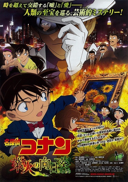影片海报1905电影网讯 日本人气漫画《名侦探柯南》2015全新剧场版《名侦探柯南:业火的向日葵》曝光全新预告片。与此同时,由摇滚乐团“色情涂鸦”演唱的主题歌《哦!宿敌》也在预告片中首度公开。该片是《柯南》第19部剧场版,讲述了日本大富豪铃木次郎吉在纽约拍卖会上以3亿美元高价拍下了梵高名画《向日葵》,次郎吉决定召集通称为“七武士”的专家团来保护这幅名画,但怪盗基德突然现身,并宣称要夺取这幅名画,此时柯南决定站出来与怪盗基德展开周旋……公开的预告片中,全新角色“七武士”依次亮相,除了毛利小五郎之外,企划员圭子、鉴定师宫台夏美、修复师东幸二、导演岸久美子、负责运输的石岭泰三、担当警备的查理纷纷登场。存放梵高名画《向日葵》的博物馆突然失火,谁是火灾的幕后操纵者?柯南能否再度发挥他的聪明才智解救这场名画盗窃危机?影片《名侦探柯南2015:业火的向日葵》将于2015年4月18日在日本全国公映。