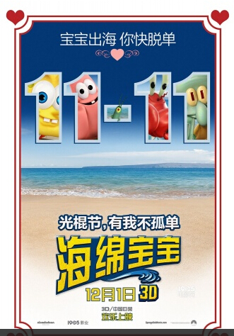 1905电影网讯 12月1日即将登陆内地大银幕的《海绵宝宝3D》在光棍节这天又玩出了新花样,不仅放出了一整套光棍节角色海报,还首次发布了一款文艺深沉的黑白视频特辑:《海绵的一天》。无论是海报还是视频,这群海底小生物们都希望能让在11月11日这天形单影只的人不再孤单,由他们帮你把爱大声说出来!“宝宝出海”甜蜜登陆 贱萌情话帮你快脱单一向以手绘动画形象出现,在海底世界畅游的海绵宝宝和他的小伙伴们首次以CG动画形象“脱水”而出,趴在了碧海蓝天的沙滩上。海绵宝宝、派大星、蟹老板、章鱼哥、珊迪,这群比基尼海滩上的居民们不仅“催”你脱单,个个都还帮你准备好了情话,在脱单之路上祝你一臂之力。连痞老板也洗心革面,改邪归正;拿起了爱神之箭扮起了丘比特。而这支箭能够射向何方,那就要看光棍节里单身的你有没有把这些情话告诉那个意中人了。领衔的自然是海绵宝宝本人,他非常直白地用海绵与水的关系来描述两情相悦的人。而他的好朋友派大星明显自抬身价,誓要帮“蠢萌”的人找到真爱“因为不爱蠢萌那就只有蠢了”。这两个活宝的邻居章鱼哥则充分发挥自身优势,因为有了恋人的他,可以在光棍节这天免于“剁手”的苦恼。而一向贪财又吝啬的蟹老板这次竟然大气到为了爱人包下整座蟹堡王。比基尼海滩的唯一陆地居民珊迪也摆脱一贯的“女汉子”形象,难得的抒情:在深海里,有你不孤单。孤独的光棍节没人陪?回家看《海绵宝宝》大电影才安慰贱萌而又深情的告白只是海绵宝宝光棍节“脱单行动”的第一步。除了这套保持海绵宝宝一贯恶搞又卖萌的角色海报,这块小海绵还第一次走起了法式文艺路线,发布了一支孤单寂寞冷的视频特辑《海绵的一天》。在这部黑白怀旧的短片里,既洋溢着文艺气息,又带着些许黑色幽默:一块孤独的海绵,从早晨醒来,吃早餐,等公车,到上班工作,下班回家,一个人默默地走完一天。作为只有狗狗做朋友的海绵,他在早晨孤单地吃早餐,每天过着一成不变的生活,而上班的地方则是餐厅的洗碗间,认真履行着身为一块海绵的使命。下班回家后还不忘慨叹每天乘坐的巴士上不变的面孔和不变的模糊的生活。而回家坐在沙发上看电视的这块海绵,则希望自己不再过这样一成不变的生活,而他的梦想,则是由电视里的海绵宝宝给予和实现。如此文艺的海绵形象还是头一次在短片中出现。所以虽然不是每一块海绵都是海绵宝宝,但他们都梦想着能过上这块贱萌黄色小海绵的海底生活。相信变身后的超级英雄版海绵宝宝也会在海绵界中引领风尚。孤独的光棍节里,也是有了海绵宝宝,生活里才多出了成吨的积极性与正能量,在空虚寂寞冷的日子里安慰而快乐。这次的二连发的光棍节彩蛋同时采用了CG动画和超级英雄变身造型,这也是《海绵宝宝3D》中独具匠心的新鲜元素。据悉,这部由派拉蒙出品,1905影业参与投资的动画大电影将以3D和中国巨幕的形式在12月1日上映,和观众们共同拉开贺岁档的大幕。
