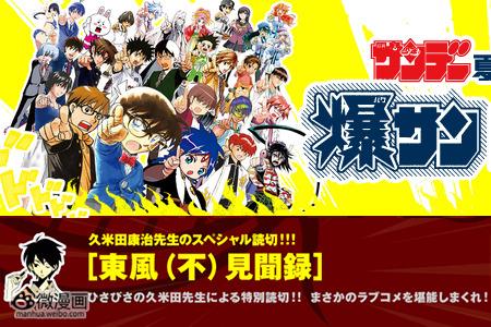 作为小学馆《少年SUNDAY》夏之感谢祭的特别企划之一,《妄想改造人改藏》《再见了绝望先生》漫画作者久米田康治确认将在下周发售的《少年SUNDAY》上刊登新短篇《东风(不)见闻录》。擅长批判搞笑漫画的久米田康治,这次短篇漫画的主题为“恋爱喜剧”。不过对于“恋爱喜剧”这个词,官网介绍中没有使用常见的“ラブコメ”,而是用了同音同意但是很少人用的“ラヴコメ”来表示,不知道有什么玄机。官网还表示实际刊登的内容可能会和预告不同,敬请理解。1967年9月5日出生的久米田康治,曾在《少年SUNDAY》连载《威龙少年队》《妄想改造人改藏》等漫画作品,不过其代表作《再见了绝望先生》却是在讲谈社《周刊少年Magazine》连载。现在《少年SUNDAY》正在为周销量快要跌破50万而发愁,才举办了这次的夏之感谢祭,老作者久米田康治也赶回救场。