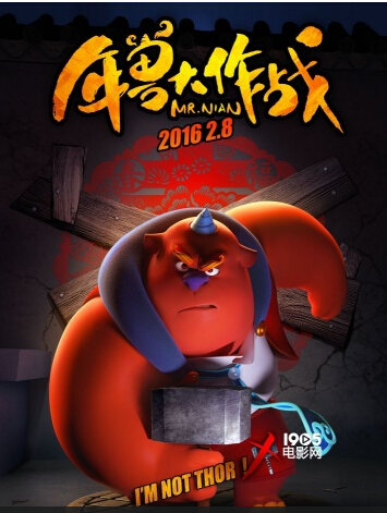 1905电影网讯 由宁浩担任出品人、张扬导演的合家欢动画电影《年兽大作战》,继之前曝光“燃爆新年”版先导海报引发期待之后,再度曝光一组“我是年兽”版海报,并正式宣布影片定档2016年2月8日大年初一上映。海报中,年兽首次曝光真容,一身橘红的皮肤、圆滚滚的身子显得憨厚可爱,为了“对抗”过年,他“变身”雷神、超人、金刚狼、美国队长等一系列超级英雄,试图“破坏”过年计划,这样的反差,不禁让人翘首期待。在大片云集的2016年春节档,电影《年兽大作战》作为唯一一部国产动画电影加入战队,将打造真正的合家欢动画电影,为观众送上一个关于陪伴和爱的故事。和之前先导海报中只露出一鳞半爪的年兽不同,此次曝光的“我是年兽”版海报中,年兽首露真容:一身橘红的皮毛、圆滚滚的身子,国产“大红”的萌感扑面而来。但和外形不符的是,他似乎决心“对抗”“春节”进行到底。海报中他分别变身雷神封印春联、举着舞狮化身超人一飞冲天、伸出筷子做的金刚爪撕毁年画又或是举着美国队长的盾牌对抗爆竹大战。而在最后一张海报中,忙累了的年兽躺在危险的炮竹上呼呼大睡。海报中“I’M NOT THE SUPERMAN” (我不是超人)“I’M MR NIAN”(我是年兽)等文案,也突显了要把年兽打造成中国版超级英雄的态度。和传统神话中年兽凶神恶煞的外形不同,《年兽大作战》中的年兽形象圆圆胖胖,脸上夹杂着少许卷眉,造型更融合了独角石狮子等中国传统元素。影片汇集了坏猴子电影工作室的黄金班底:宁浩导演担当出品人、曾创作过《疯狂的石头》、《心花路放》、《港囧》等作品的著名编剧邢爱娜担任影片编剧,曾任《疯狂的石头》特效导演的张扬担任动画导演,本片中的音乐亦全出自著名音乐制作人董冬冬之手,以如此强大的电影班底为影片质量保驾护航也足以鉴证本动画电影之本土至高标准。