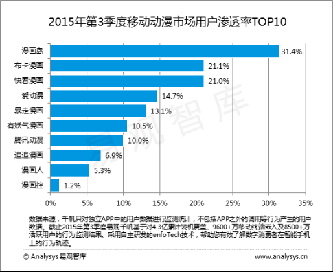 但是从整个动漫市场来看。国漫的目前处境并不乐观,尤其对于日漫进入中国造成的冲击,而随着长时间的用户培养和习惯同时加上动漫品质上面的差异,使得目前国内受众用户在日本的比例依然高于国漫。在艾瑞咨询对二次元用户做的市场调查报告中我们可以看到,日本动漫在国内二次元用户的渗透率远远高于国漫,当然相比欧美动漫来说,国漫仍存在一定的优势。