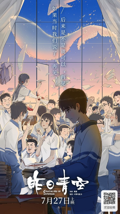 近日,随着开学季的火热开启,国内首部刻画中国人自己青春生活的动画电影《昨日青空》也宣布定档今年10月26日。同时,影片也发布了朝气十足的“开学迎新”定档海报,并喊出“最初的梦想,与你有关”的青春宣言,这些都将影片独特的中国风校园气息展露无疑。