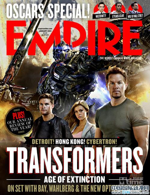 由迈克尔·贝执导的明夏巨制《变形金刚4:绝迹重生》汽车人领袖“擎天柱”造型首度曝光!全新造型的擎天柱与三位主演马克·沃尔伯格(下图右起)、妮可拉·佩尔茨、杰克·莱诺一同登上了英国老牌电影杂志《帝国》2014年1月刊封面。擎天柱左手持盾,右手持剑,后背喷出蓝色火焰,犹如战神归来,霸气英武。擎天柱身上的涂装依然保持了标志性的红蓝双色和火焰纹理,与此前官方曝光的汽车造型完美呼应。此前官方曝光的“擎天柱”新汽车造型:定制款戴姆勒西星卡车《变形金刚4》的一大看点无疑是在原作中人气颇高的“机器恐龙”(Dinobots)将首度登上真人电影,2014年《变4》上映时也正是它们诞生三十周年。而根据此前变迷在孩之宝玩具摊位上偶然拍到的一张图片,《变4》中擎天柱有可能变身“龙骑士”,骑着“机器恐龙”作战,这一设定倒颇符合擎天柱手持剑盾的新造型。图片上擎天柱也是手持剑盾,胯下正是机器恐龙小队的头领霸王龙“钢索”《变形金刚4》将有不少中国戏份,中国演员李冰冰、韩庚将助阵出演。《变4》剧组已于10月底来华取景,相继辗转香港、重庆武隆和北京三地,拍摄工作于11月6日杀青。据导演迈克尔·贝爆料,《变4》全片预计长达120分钟,其中香港戏份将占到30至35分钟左右。制片人洛伦佐·迪·博纳文图拉表示《变4》将不会有“中国特供版”,全球只会有一个版本。据悉,这期《帝国》杂志将大篇幅放出有关《变形金刚4》底特律、香港探班的独家猛料。《帝国》曝光的新工作照,迈克尔·贝亲自掌镜,主演们乘坐的车被吊起本集目前曝光的官方剧情如下:在前作芝加哥终极决战四年后,汽车人与霸天虎从地球销声匿迹,而人类也在断壁残垣的废墟中开始了新生。然而,一群手握大权的商人联合天才科学家,意欲通过那场入侵打破壁垒,研发出他们实则难以驾驭的全新技术。与此同时,地球也遭受到了一个古老而强大的变形金刚的威胁恫吓,关乎自由与奴役的正邪史诗决战一触即发……《变形金刚4》投资为1.65亿美元(仅高于三部曲中的首集),继续采用3D实拍,剧本由《变形金刚3》的编剧伊伦·克鲁格继续执笔。本片定于2014年6月27日北美暑期上映,并有望明夏同步引进中国内地。