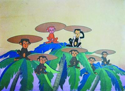 《过猴山》是1958年由王树忱首次导演的动画片,该片取材于传统木版年画中的故事和形象,创作着眼于追求一种趣味性和娱乐性,没有鲜明的善恶对立或对错判断。整个影片像一出幽默风趣的小品,气氛始终轻松活泼,洋溢着生活的气息。