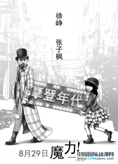 继去年贺岁档电影《人再囧途之泰囧》斩获12个亿票房后,徐峥的新作品《摩登年代》也成为了大家关注的焦点。《摩登年代》是由徐铮担纲主演的小人物情感喜剧片,将在这个暑期上映。7月15日,《摩登年代》片方正式披露了本片的先导版海报,除了海报上黑白复古的魔力卡通风格十分抢眼之外,也揭示了电影将定档8月29日,用笑声向这个夏天say goodbye!这部由总导演邵晓黎操刀制作的电影《摩登年代》讲述了一个并不完美的成人童话:一个整天晃荡在自己骗局中的过气魔术师欧大卫(徐峥 饰),因为一个自称女儿的小女孩丢丢(张子枫 饰)的意外出现,被搅了骗局,搅了财局,更差点搅了情局!他几乎输到一无所有,但最终却和爱他的女人们一起,收获了一个浪漫的残局。影片以一个落魄的中年男人与陌生女孩之间看似荒诞的故事展开,从陌生人到至亲,滑稽的情节却包含了亲情的戏码。在7月15日正式披露的《摩登年代》首款先导海报中,这对魔力搭档之间的情感张力则更是凸显无疑:一身老派魔术师打扮的徐峥痞气十足,回头张望着张子枫的眼神也颇有些不耐烦,而张子枫则是亦步亦趋跟着,丝毫不肯松懈。二人扛着的“魔术道具”箱上恰好就是《摩登年代》的片名!而黑白卡通风格的画面,则洋溢着一股复古Style,同时也是在向喜剧大师卓别林的同名经典默片名作致敬,资深影迷一定会由此引发会心的一笑。而因为片中徐峥饰演的欧大卫曾经是一位“天才魔术师”,因此电影中更安排了数场精彩好看的魔术秀,只是这个“落魄版刘谦”身边的“托儿”既不是董卿那样的御姐美女,也非李云迪那样的俊朗帅哥,而只是一直对他死缠烂打的女儿丢丢。这个带着一分天真、两分痞气、三分精明和四分执着的小萝莉,则是由曾出演过《唐山大地震》中“童年方登”的天才小童星张子枫饰演。另外,正在热播的《非缘勿扰》中饰演“纯情女”苏月的王宣予,与担任包括台湾第一美女林志玲等众多明星的私人表演指导老师,被誉为“明星教父”的实力派的演员张颂文,以及《老男孩》组合筷子兄弟王太利和肖央等联袂加盟,为这场“魔力秀”煽风点火。而因为片中徐峥饰演的欧大卫曾经是一位“天才魔术师”,因此电影中更安排了数场精彩好看的魔术秀,只是这个“落魄版刘谦”身边的“托儿”既不是董卿那样的御姐美女,也非李云迪那样的俊朗帅哥,而只是一直对他死缠烂打的女儿丢丢。这个带着一分天真、两分痞气、三分精明和四分执着的小萝莉,则是由曾出演过《唐山大地震》中“童年方登”的天才小童星张子枫饰演。另外,正在热播的《非缘勿扰》中饰演“纯情女”苏月的王宣予,与担任包括台湾第一美女林志玲等众多明星的私人表演指导老师,被誉为“明星教父”的实力派的演员张颂文,以及《老男孩》组合筷子兄弟王太利和肖央等联袂加盟,为这场“魔力秀”煽风点火。