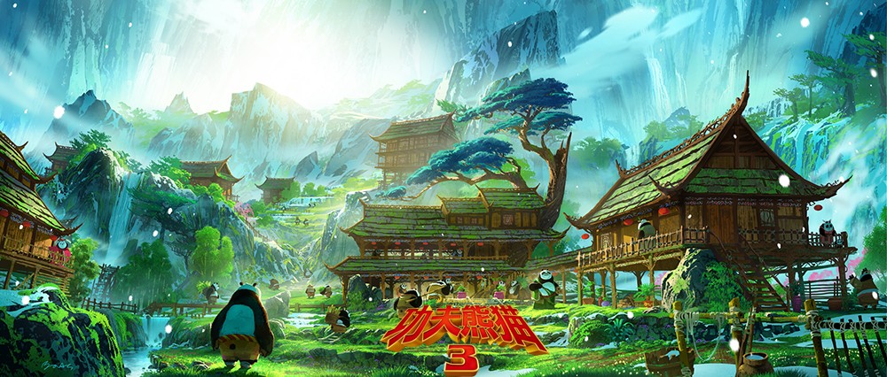 由中影股份、东方梦工厂与美国梦工场动画合作拍摄的动画电影《功夫熊猫3》今日再次发起攻势,曝光了一组全新场景概念图。整组图充满了东方神韵,青山绿水、悬崖峭壁将一个隐藏在深山之中的熊猫世界全景重现。值得一提的是,这组概念图是量身为中国观众设计,全程实地取景于四川青城山。这些唯美的风景奇观,足够让粉丝们先睹为快,大饱眼福。 为真实再现熊猫生活的地域环境,主创团队特地来到中国四川感受风土民情。主创团队更是受到青城山当地民众的启发,设计出这组场景:在隐秘的群山中藏着一个熊猫天堂,被冰川包围,被地热水池所保护。整幅画面在积雪覆盖的陡峭山峰中,在大雾弥漫中被赋予更多神秘的东方色彩。另一组量身订做的场景则是一副全然不同的景观:隐秘于世的熊猫村,是群山中心的一个天然绿洲,在那里熊猫无忧无虑地尽情享受生活。月光的照耀,使这里看上去更加迷人。主创团队表示,这些场景原型也全都来自中国,正是青城山。据悉,该片讲述 《功夫熊猫2》之后的故事,阿宝失散已久的亲生父亲突然现身,重逢的父子二人一起来到了一片不为人知的熊猫乐土,在这里遇到很多可爱有趣的熊猫同类。 这组概念图除了展现影片中熊猫村的生活场景,更是将一个完整的熊猫世界全景重现。由于早年遭到孔雀沈王爷的残忍追杀,如今熊猫一族避世隐居于深山桃源中。整座山谷里几乎都是熊猫居住,也包括阿宝的父亲李山,它们在这里安居乐业与世无争,生活怡然自得。阿宝看到了自己真正的亲人。 《功夫熊猫3》新一集故事衔接上集,讲述阿宝失散已久的亲生父亲突然现身,父子二人重逢之后的故事。影片英文版配音由杰克·布莱克、安吉丽娜·朱莉、达斯汀·霍夫曼、成龙、塞斯·罗根、刘玉玲、大卫·克罗斯、吴汉章、兰德尔·杜克·金、布莱恩·科兰斯顿、瑞贝尔·威尔森等明星加盟。中文版配音也请到成龙、杨幂、筷子兄弟、朱珠、郭子睿(石头)等影星助阵。据悉,未来将有更多明星加盟。《功夫熊猫3》将于2016年1月29日中美同步上映。