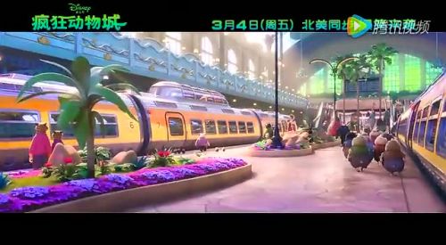 在这支片段中,镜头行云流水般跟随主角兔朱迪乘坐的城际列车,缓缓驶入了动物城的中央火车站。火车与车站乍一看都与人类世界无甚区别,但是当车门缓缓打开时,精巧的设计就呈现眼前, 随后朱迪步出车站,动物城的市中心初露真容——鳞次栉比的摩天大楼,座座都有动物元素设计;动物城的巨星夏奇羊也现身广告牌,欢迎大家光临动物城。