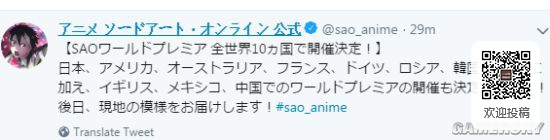 此前,官方宣布《刀剑神域》第三季“Alicization”第1集将会在在日本,美国,澳大利亚,法国,德国,俄罗斯,韩国7国先行上映,时长为1小时。今天(9月14日)官方追加英国、墨西哥、中国三个国家举办先行上映活动。