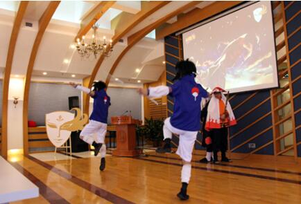 2016“金面具”启动会现场,中央民族大学笛箫社和北京科技大学棍舞双截棍社共同表演《火影忍者》