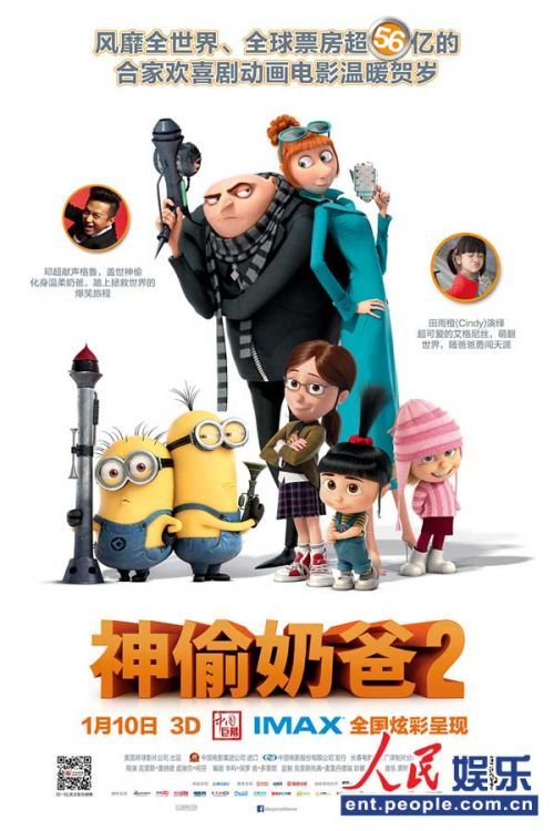 由邓超、“森碟”田雨橙萌趣献声的3D合家欢动画大片《神偷奶爸2》日前正在热映。该片自上映以来凭借“零差评”强劲口碑领跑贺岁动画,其内地票房也呈现长线飘红趋势。根据相关票房数据统计显示,该片票房日前也正式突破2亿大关,成为2014第一部破两亿的电影,其全球总票房也达到9.5亿美元,即将超过另一部经典动画《狮子王》(9.51亿美元)的票房纪录,跻身影史最卖座动画前前两名。与此同时,《神偷奶爸2》日前也荣获第86届奥斯卡最佳动画提名和“最佳电影原声音乐”提名,强力冲击年度最佳动画。放映三周热度不减据了解,卖萌小黄人进入映后第三周依旧热度不减, 该片顶住多部上映新片的冲击,表现出良好的市场抗跌能力。票房统计显示,该片上周末(1月17日至1月19日)斩获近6000万票房,而日前也依旧保持1万场以上的全国排映场次。有影院经理指出,该片的精良制作水准和超高口碑是票房长线飘红的最主要原因,“和去年大热的《疯狂原始人》一样,这部好莱坞动画的影院生命力很强,国内的总票房还会进一步攀升。”而面对近日国产动画的抱团冲击,该片表现不俗,在晚间黄金场次的排映场次及上座率方面,《神偷奶爸2》依旧领先于近期上映的多部国产动画。业内人士分析,作为一部全年龄的合家欢动画,《神偷奶爸2》的观影人群范围更为广泛,”电影的爆笑故事和出色的3D视觉效果吸引了很多年轻观众,同时,影片传递家庭、责任等方面的正能量,深受广大80后父母的欢迎,欢乐的情节与萌趣小黄人也让小朋友乐在其中。”小黄人精美手绘图曝光对于该片在中国市场的强势表现,在片中卖萌耍贱小黄人功不可没。连该片制片人都坦言这些胶囊造型的小人已经成为“电影最具标志性的元素”。据了解,在电影热映的同时,小黄人主题的手机游戏5日内的下载量就达到近600万,而手机客户端推出的“神偷奶爸”小黄人呆萌动图表情也吸引了大批粉丝影迷们下载。对此,该片近日也是曝光一组小黄人精美手绘图,为影迷详解小黄人们和格鲁一家的图画绘制过程。