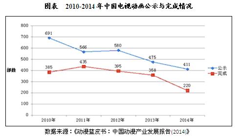 中国动漫产业化进程刚刚开启,目前仍处于初级发展阶段。自2006年中国动漫启动产业化进程以来,中国动漫的商业化、市场化、产业化程度与日俱增。从产业生命周期理论来看,中国动漫目前正处于从幼稚期向发展期转变的过渡阶段,其阶段特点是产品设计尚未成熟,行业利润率较低,市场增长率较高,需求增长较快,技术变动较大,行业中的佼佼者主要致力于开辟新用户、占领市场,但此时技术上有很大的不确定性,在产品、市场、服务等策略上有很大的余地,对行业特点、行业竞争状况、用户特点等方面的信息掌握不多,企业进入壁垒较低。虽然我国政府基于促进幼稚民族产业发展、保障国家文化安全和经济安全,采取后发国家赶超战略,争取以强大的产业政策来推动动漫产业跨越式发展,但毕竟我国动漫产业发展时间较短,对于产业规律的把握和商业运营仍停留在较为肤浅的层面上,距离跻身世界动漫大国和动漫强国仍有很大差距。但也要客观看到,经过近十年的产业扶植和快速发展,已经形成了“喜羊羊”“熊出没”等多个能与国外优秀动漫相抗衡的一线品牌,一大批动漫精品和二线品牌,以及众多较有一定影响的知名动漫产品。中国动漫产品与国外动漫产品相比,有一条非常明显的长尾。这是由于国外动漫基于大投资大制作的精品策略经过数十年的积累沉淀形成了大量优秀动漫品牌,但由二、三线品牌构成的尾部并不长;而国产动漫经过短短几年的发展,更多呈现出来的是一条长尾,犹如水平面以下的巨大冰山,未来必将有大量优秀品牌从中脱颖而出,最终形成一个多维度、多层次的品牌矩阵。以百度搜索风云榜动漫榜单为例,在其前25名中有16部日本动漫产品、6部国产动漫产品、2部欧美动漫产品和1部其他国家动漫产品,市场份额分别为64.0%、24.0%、8.0%和4.0%,但将更多项目纳入统计范围就会发现各个国家的市场份额发生了变化:在前200名的榜单中,日本动漫、国产动漫、欧美动漫和其他国家动漫产品的市场份额分别演变为45.5%、33.5%、20.0%和1.0%,中日动漫产品市场份额的差距正在逐步缩小。由此看来,我们对于国产动漫需要增强信心、保持耐心,在下一个十年里努力推动我国从动漫大国向动漫强国迈进。我国动漫产业规模分析2014年我国动漫产业更多地受益于转型升级所带来的质量和效益提升,依旧保持强劲的发展态势,总值超过1000亿元,与2013年相比增长14.84%。2014年,我国动漫企业在动漫产业化潮流中快速成长,规模实力有所增强,一批有实力、有特色的动漫企业逐步脱颖而出。据中投顾问发布的《2016-2020年中国动漫产业投资分析及前景预测报告》统计,目前我国共有动漫企业4600余家,专业人员近22万人,从业人员50余万人,年产值在3000万元以上的动漫企业24家,年产值超过1亿元的大型企业13家。我国动漫产业已形成以广东、上海、北京为首,珠三角、长三角和环渤海地区协同发展的核心区域,以及以奥飞动漫、华强动漫、腾讯动漫、中南卡通、炫动传播、淘米动画、央视动画等大型企业为代表的“第一阵营”。(一)电视动画产量走低,“低龄化”成发展瓶颈2014年国产电视动画产量继续走低,全年产量为411部(其中完结220部),较2013年下降13.4%。一是由于市场竞争激烈,部分动画制作企业有限成长,微利生存;二是由于“十二五”规划提出动画生产需要从数量向质量转变,各地相继优化了扶持方案。从类型来看,2014年我国国产电视动画类型依旧以益智教育类为主,占52.3%,其次是亲子类动画,占42.5%,相比2013年都有小幅增长。电视动画“低龄化”仍然是内容生产的主流形式。爱奇艺2014年第三季度《中国动漫指数报告》显示,7-13岁儿童仍然是国产动漫的主流观众,比例达到46%;18岁以上动画观众占比上升至16%,与第一季度3.7%的占比相比增速明显。但从针对18岁以上成人动画产品的质量来看,2014与2013年相比,有一定程度的下降。《动漫蓝皮书:中国动漫产业发展报告(2014)》指出,“低龄化”已经成为阻碍国产动画市场繁荣发展的主要原因之一,“全龄化”的动画生产能够吸引更多观众,正逐渐成为动画内容生产的主流趋势。(二)动画电影票房走高,“全龄化”路线初步探索2014年,我国国产动画电影票房持续走高。11月在杭州举行的第二届浙江青年电影节“聚焦浙江动画电影”主题论坛上,中国动画学会名誉主席金德龙表,国产动画电影2014年的总票房已经超过11亿元,全年有约30部国产动画电影上映,年度总票房将比上年的逾6.6亿元翻一番。2014年票房超过5000万以上的国产动画电影达7部,上映档期多集中在暑假。相比2013年5部的产量和2010-2012年每年只有一部超过5000万票房收入的情形,2014年国产动画电影票房可谓表现不俗。2014年暑期档共上映11部动画电影,8部系国产,其中5部票房超过5000万元。从代表大众观影人群的时光网、豆瓣网评分来看,2013年和2014年暑期档国产动画电影的平均得分为4.81分和6.01分;而从代表专业观影人群的动画影评俱乐部评分来看,2013年和2014年暑期档国产动画的平均得分为6.33分和6.76分。中投顾问发布的《2016-2020年中国动漫产业投资分析及前景预测报告》显示:与国产电视动画的相似,我国动画电影的发展也在探索“全龄化”路线。2014年超过5000万票房的动画电影中,出现了两部罕见的为成年观众量身定做的作品--《秦时明月3D电影龙腾万里》与《龙之谷:破
