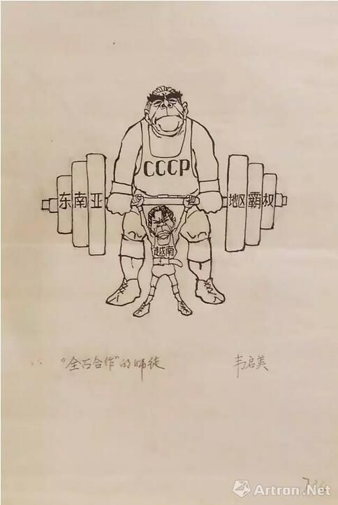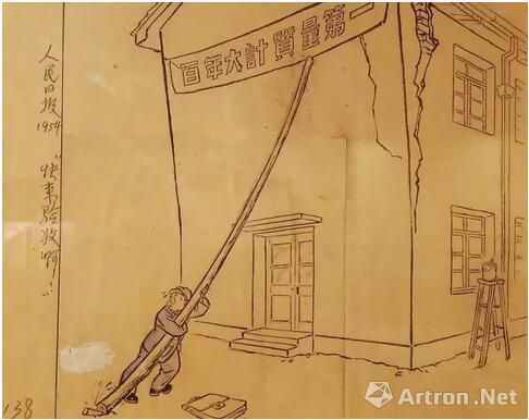 新中国成立之初的大建设过程中,虽然出现了华君武笔下的官员姿态,但是更多的漫画家集中在不切实际的“大跃进”中,批判当时这种过度的政治风气,比如韦启美漫画艺术展中的《‘创造’典型》就是其中的代表,画面中一位照相师傅在蒙头摆拍“典型生产”中的超大产量的麦穗,后面的官员在抄写亩产达到1377斤的生产报告,一刀切的生产经验正在被一位官员盲目推广,而另外一位官员则堵在门口拒绝一切提意见的人民。这样一个典型的场景正是新中国成立之初的大搞建设的场景,也是这个时期漫画家所想要呈现的内容,但也正是因为这样的真实呈现,使得韦启美等艺术家在文革期间遭受迫害,断送了一代漫画大师的艺术,从此也让中国漫画的发展经历了断层。