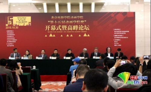 10月30日上午,第十五届“动画学院奖”开幕式暨高峰论坛在人民大会堂开幕。中国青年网见习记者 开可 摄10月30日上午,第十五届“动画学院奖”开幕式暨高峰论坛在人民大会堂开幕。众多动画艺术和动画产业“领军人物”齐聚开幕式,并在高峰论坛上发表演讲。中国动画学会会长余培侠,中国动漫集团董事长兼总经理、北京网络文化协会会长庹祖海等莅临现场,北京电影学院副院长孙立军等出席了活动。开幕式由孙立军主持,他表示,在人民大会堂这么庄严的地方进行“动画学院奖”的开幕式,是想向更多人发出动画产业人的声音,希望中国的动画、漫画产业能够再次稳固地向前发展。北京电影学院动画学院客座教授庞邦本在开幕式致辞中说:“历届学院奖的舞台上都展示了老师和同学们许多生动、鲜活、优秀的动画作品。这些作品记录了中国动漫的进步与成果。正是通过一件件学院奖,展示了我国动漫产业由小到大,成为今天动画大国的历程。”庞邦本也对在场从事动漫艺术、产业的研究人员提出了新的问题,“如何把国家、社会对动画的重视程度和我们自己的学术、文化状态联系起来,如何自觉通过各种手段构建更高水平的动画中国品牌,是摆在面前很重要的课题。”在随后举行的高峰论坛上,著名动画师凯文盖格、匈牙利动画导演伽伯乌尔里希、温哥华电影学院国际部主任迪瓦卡尔甘地以及日本动画专家持永只仁(中文名:方明)之女持永伯子发表了演讲。凯文盖格在演讲中提到中国的创意产业近年来有了长足的发展,特别是《大圣归来》《捉妖记》等影片收获了不错的票房成绩。他认为中国的创意产业是在“跳着前进”,并且有可能在“跳跃中”超过现在的发达国家。开幕式现场还举行了中国动漫集团有限公司与北京电影学院动画学院战略合作框架协议签署仪式,共同为中国动画产业的发展贡献力量。据悉,北京电影学院动画学院奖是专业性动画评奖活动。每年举办一届,在年底举行颁奖,届时还将进行一系列学术交流等活动。学院奖的宗旨是鼓励与推动具有独立精神与创造性的动画创作,不断挖掘与充分展示动画作为艺术的多样性,为真正热爱动画艺术的人提供展现自我与互相交流的机会,促进动画创作中的学术发展。